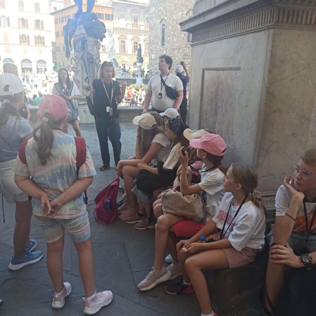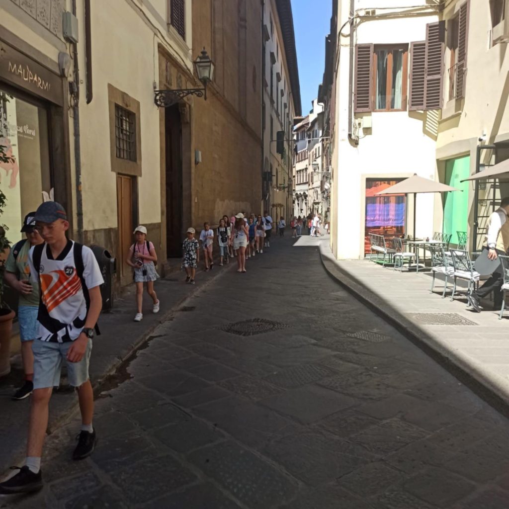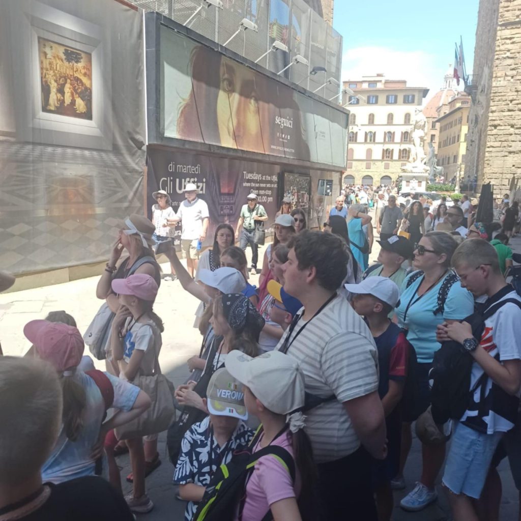Dziś obudziliśmy się nieco szybciej niż byśmy chcieli (kto w ogóle wymyślił poranne zbiórki?!), ale warto było – kierunek: Florencja! Miasto renesansu, sztuki, historii i… bardzo kuszących lodziarni.
