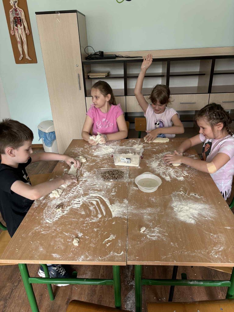 W miniony piątek w naszej szkole odbyły się wyjątkowe Warsztaty Małego Piekarza, które dostarczyły uczniom mnóstwo radości, a także praktycznej wiedzy i nowych umiejętności. Dzieci miały okazję wcielić się w rolę prawdziwych piekarzy – zagniatały ciasto i formowały bułeczki.
