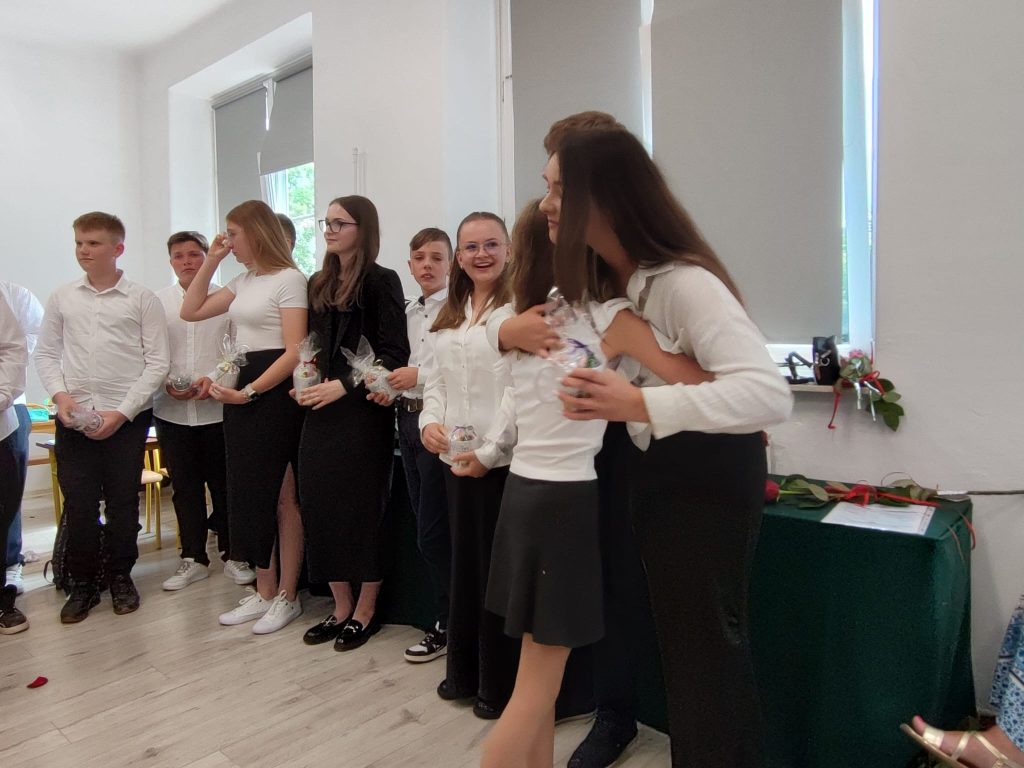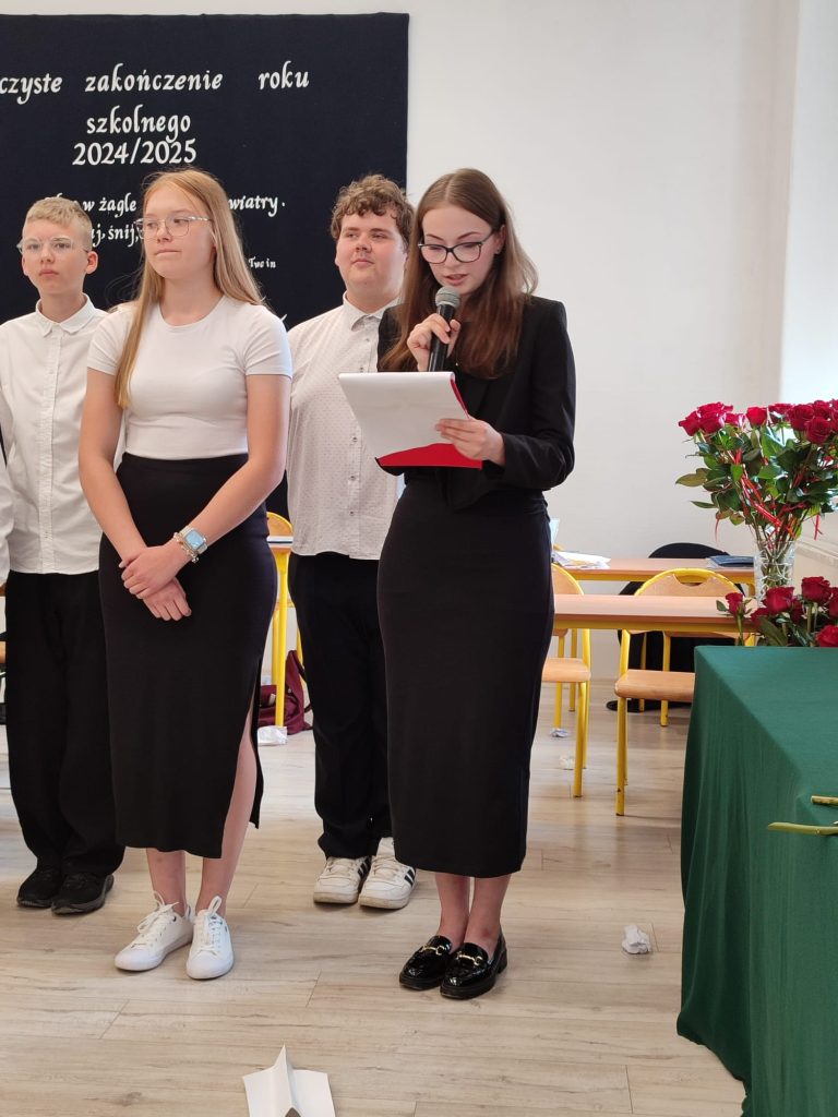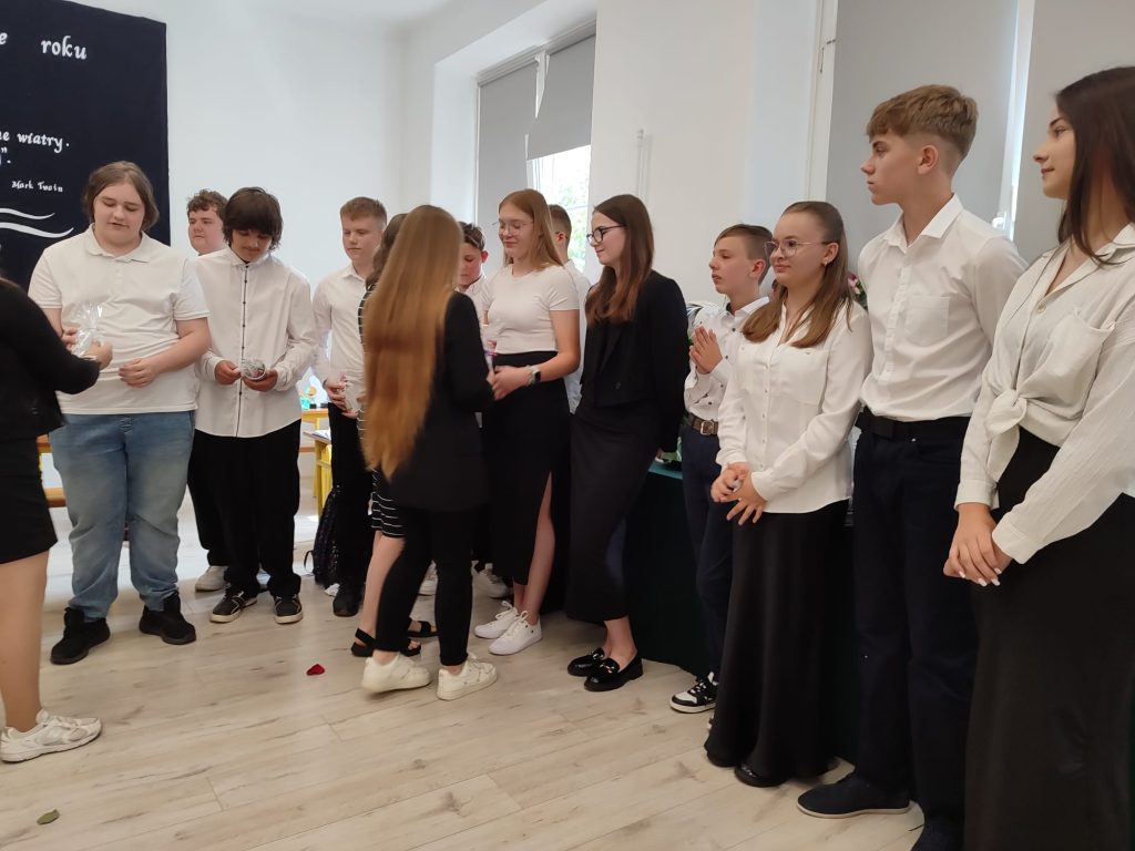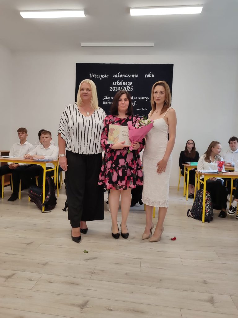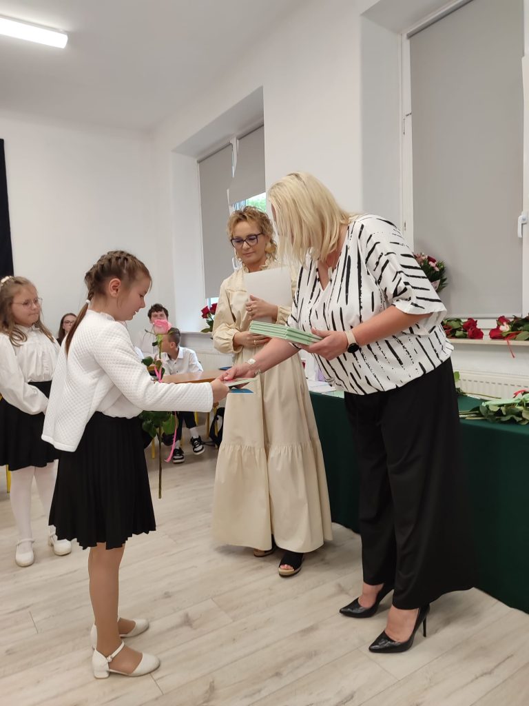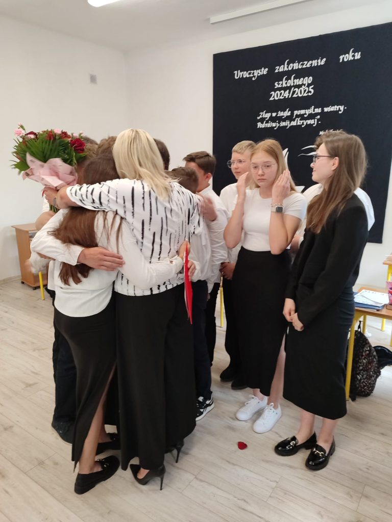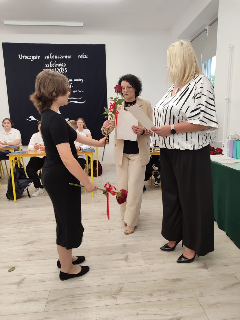 27 czerwca 2025 roku odbyło się w naszej szkole uroczyste zakończenie roku szkolnego 2024/2025. Dyrekcja, Nauczyciele, Pracownicy Administracji i Obsługi oraz uczniowie klas I – VIII zebrali się na świetlicy, gdzie odbyła się uroczystość związana z pożegnaniem uczniów klasy VIII. Było to szczególne pożegnanie. Sekretarz – Pan Arkadiusz Klimowski wręczył Nagrodę Wójta Gminy Sierpc za wybitne wyniki w nauce i godne reprezentowanie szkoły uczennicy VIII klasy – Ewelinie Olszewskiej. Pani Dyrektor w swoim przemówieniu pożegnała odchodzących uczniów oraz złożyła podziękowania i życzenia Pracownikom Szkoły, Rodzicom. Po przemówieniach wręczono statuetki, świadectwa oraz nagrody. Wszyscy uczniowie klasy ósmej otrzymali świadectwo ukończenia szkoły. Uczuciu radości towarzyszyła refleksja, że to już pora pożegnania ze szkołą, z wychowawcą, nauczycielami i rówieśnikami. Następnie absolwenci w programie artystycznym ze sporą dozą humoru przedstawili migawki ze szkolnego życia oraz podziękowania dla rodziców, nauczycieli i pracowników szkoły. Na zakończenie wychowawcy klas wręczyli uczniom klas I – VII świadectwa w klasach.