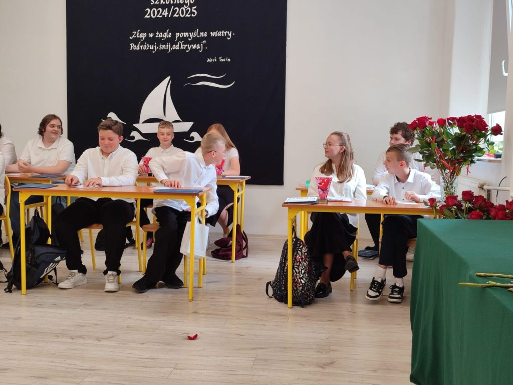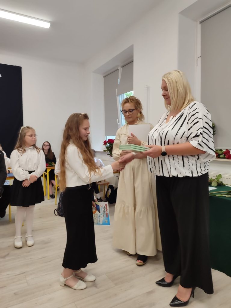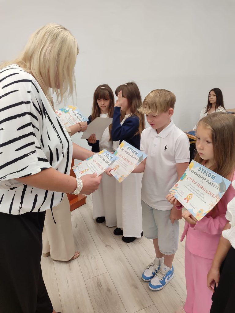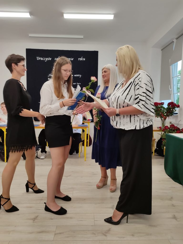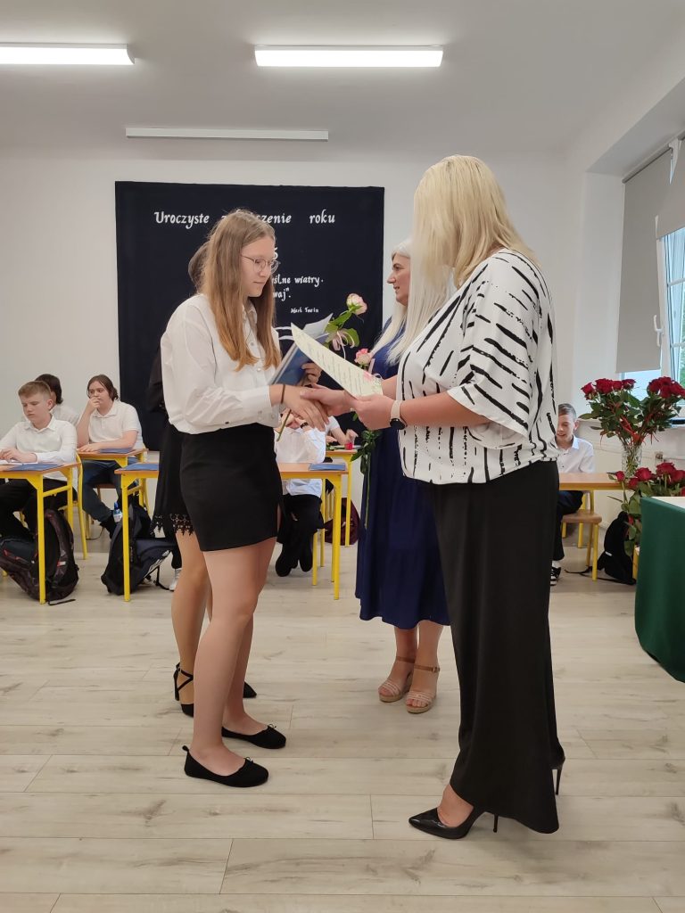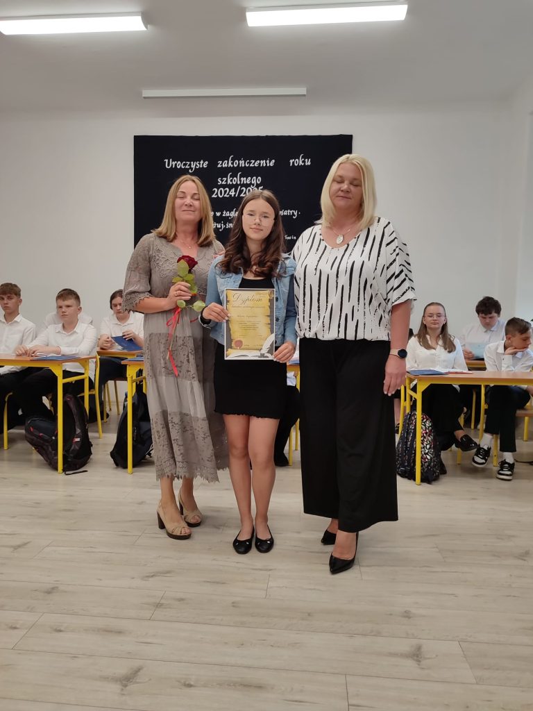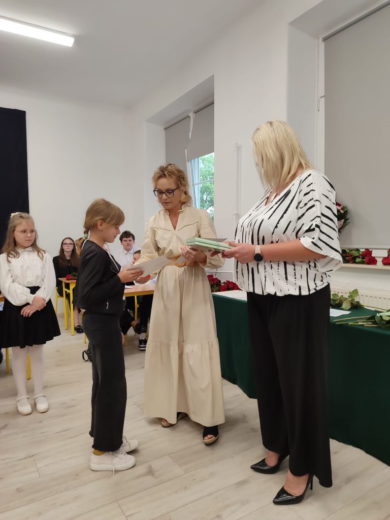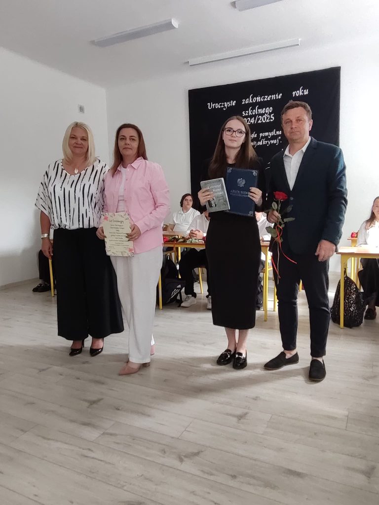 27 czerwca 2025 roku odbyło się w naszej szkole uroczyste zakończenie roku szkolnego 2024/2025. Dyrekcja, Nauczyciele, Pracownicy Administracji i Obsługi oraz uczniowie klas I – VIII zebrali się na świetlicy, gdzie odbyła się uroczystość związana z pożegnaniem uczniów klasy VIII. Było to szczególne pożegnanie. Sekretarz – Pan Arkadiusz Klimowski wręczył Nagrodę Wójta Gminy Sierpc za wybitne wyniki w nauce i godne reprezentowanie szkoły uczennicy VIII klasy – Ewelinie Olszewskiej. Pani Dyrektor w swoim przemówieniu pożegnała odchodzących uczniów oraz złożyła podziękowania i życzenia Pracownikom Szkoły, Rodzicom. Po przemówieniach wręczono statuetki, świadectwa oraz nagrody. Wszyscy uczniowie klasy ósmej otrzymali świadectwo ukończenia szkoły. Uczuciu radości towarzyszyła refleksja, że to już pora pożegnania ze szkołą, z wychowawcą, nauczycielami i rówieśnikami. Następnie absolwenci w programie artystycznym ze sporą dozą humoru przedstawili migawki ze szkolnego życia oraz podziękowania dla rodziców, nauczycieli i pracowników szkoły. Na zakończenie wychowawcy klas wręczyli uczniom klas I – VII świadectwa w klasach.
