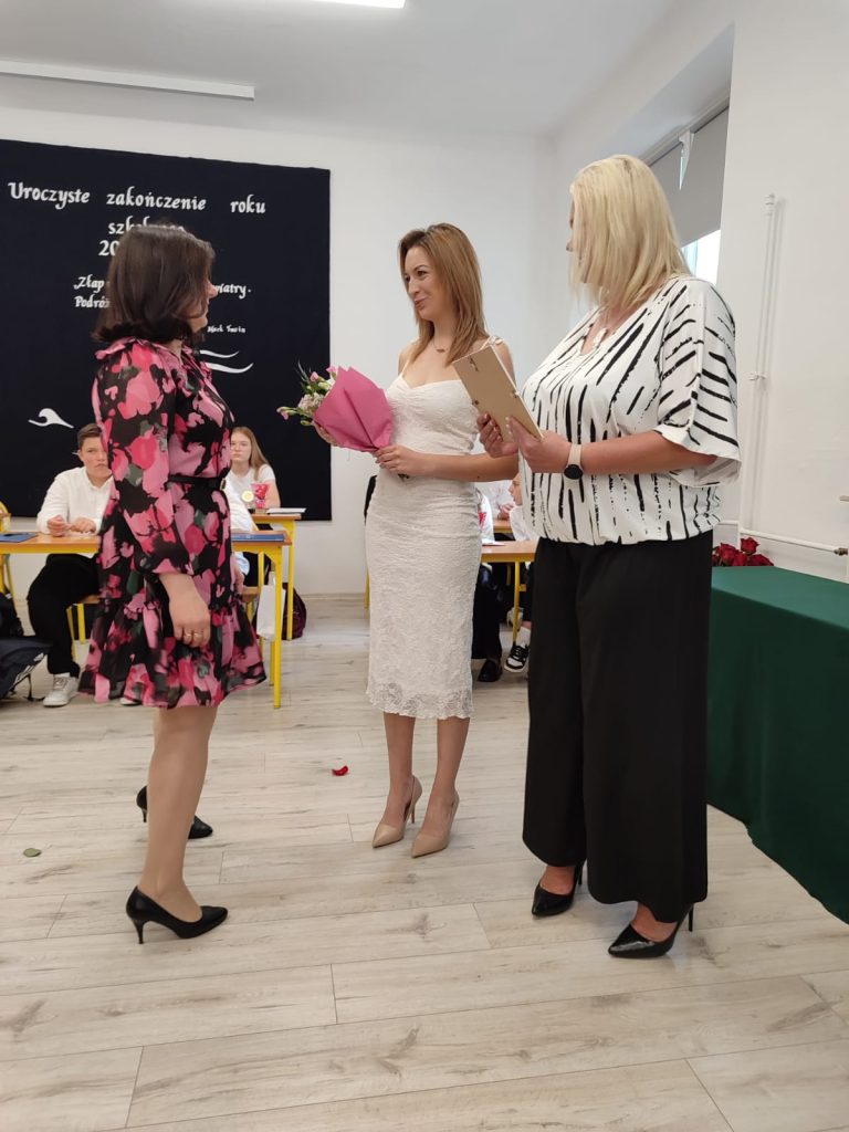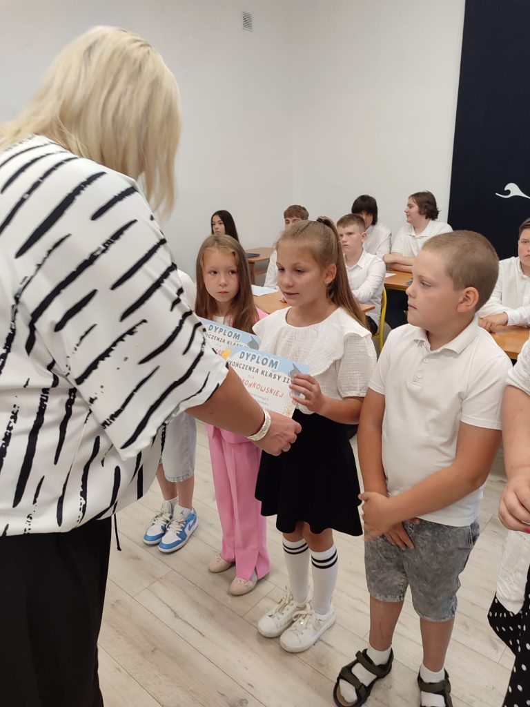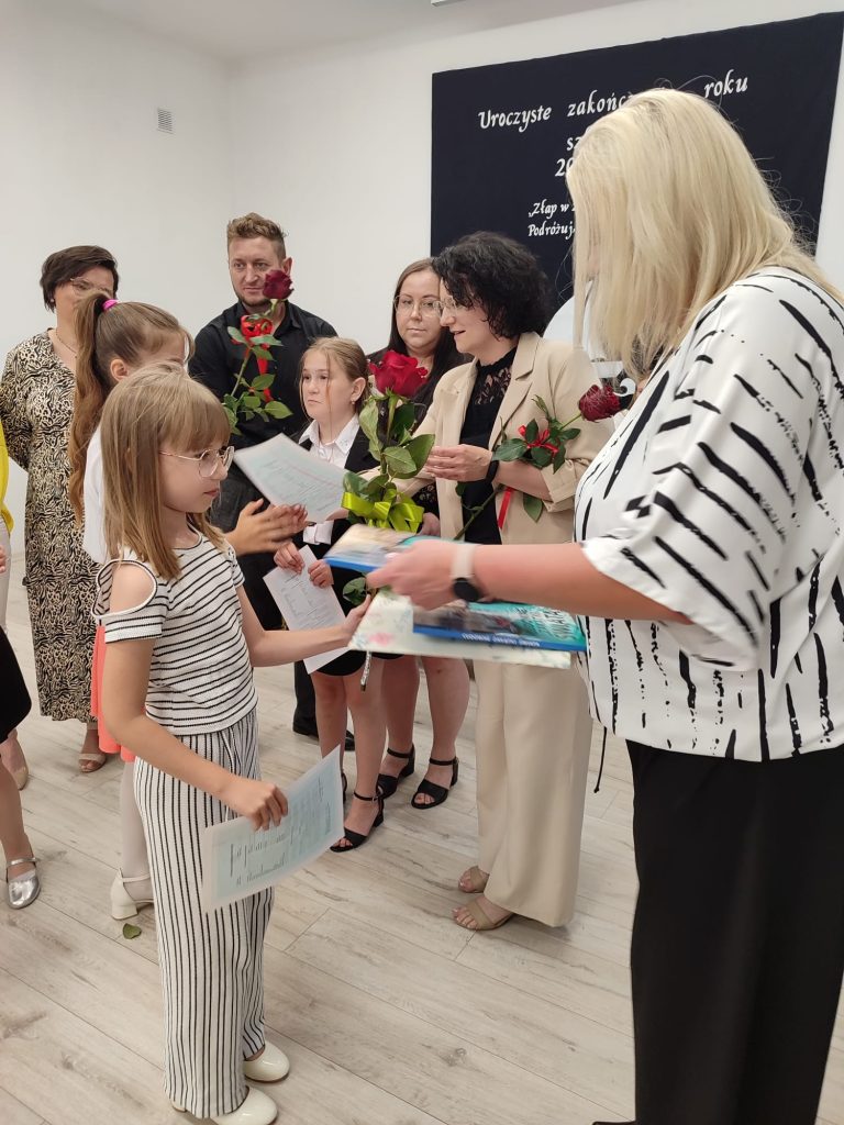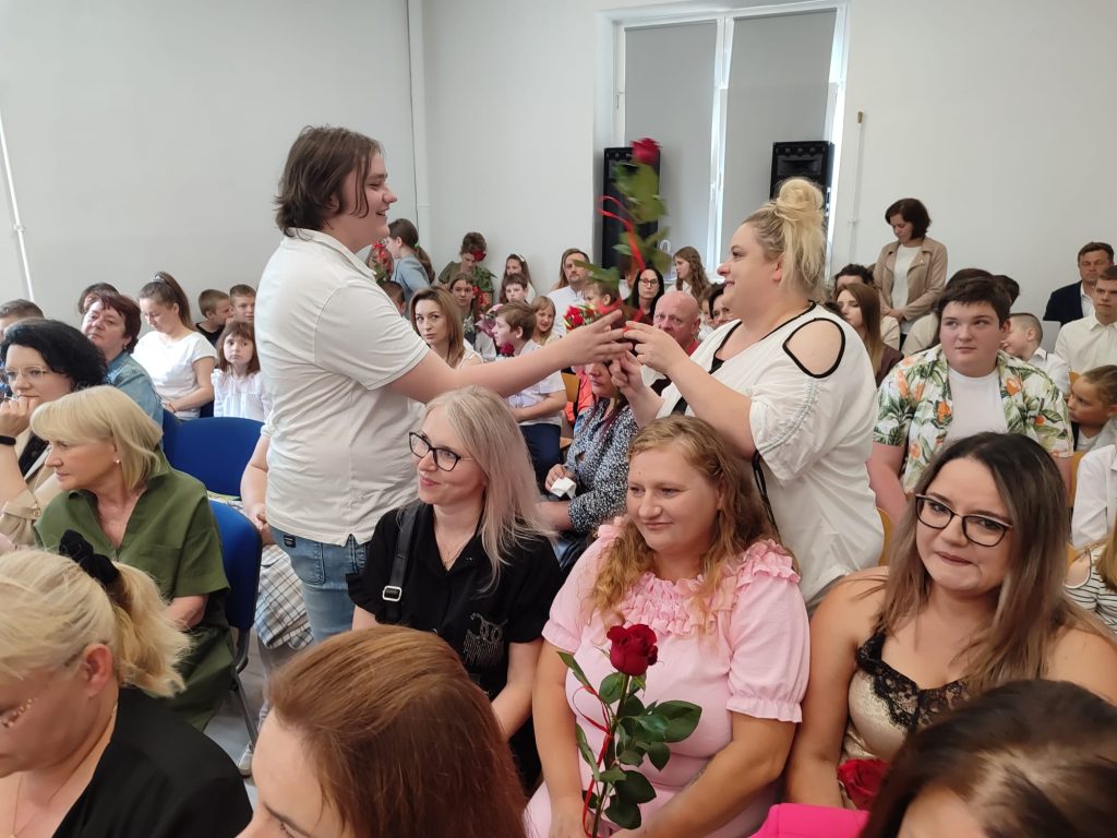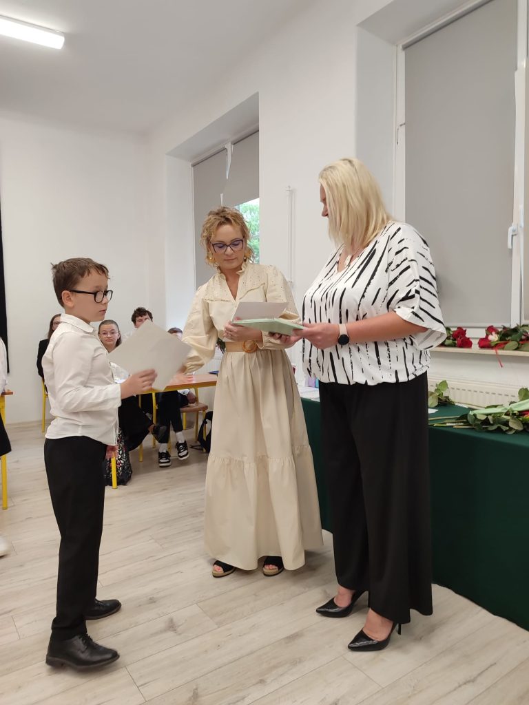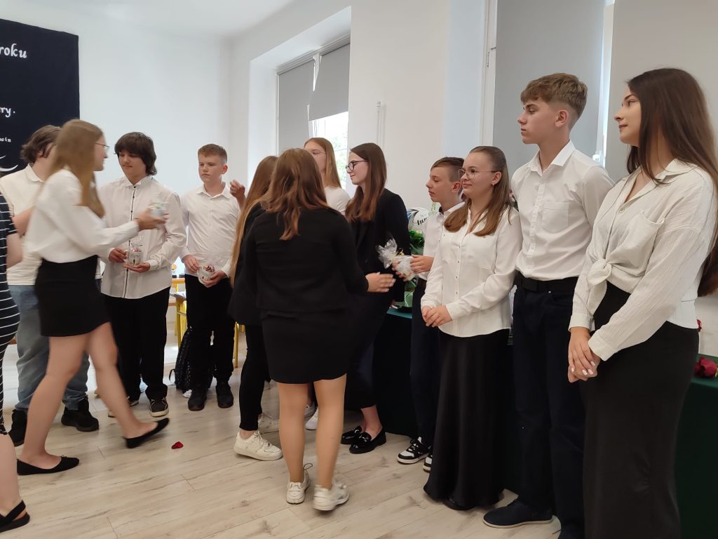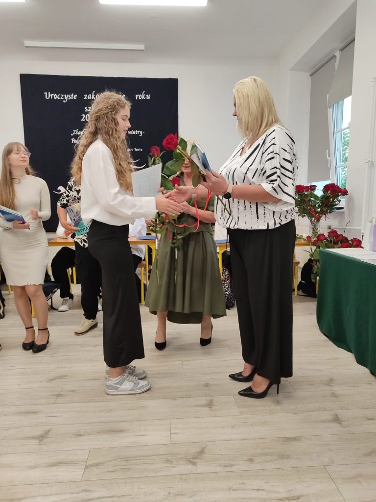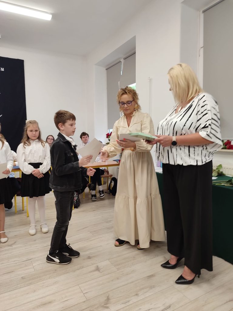 27 czerwca 2025 roku odbyło się w naszej szkole uroczyste zakończenie roku szkolnego 2024/2025. Dyrekcja, Nauczyciele, Pracownicy Administracji i Obsługi oraz uczniowie klas I – VIII zebrali się na świetlicy, gdzie odbyła się uroczystość związana z pożegnaniem uczniów klasy VIII. Było to szczególne pożegnanie. Sekretarz – Pan Arkadiusz Klimowski wręczył Nagrodę Wójta Gminy Sierpc za wybitne wyniki w nauce i godne reprezentowanie szkoły uczennicy VIII klasy – Ewelinie Olszewskiej. Pani Dyrektor w swoim przemówieniu pożegnała odchodzących uczniów oraz złożyła podziękowania i życzenia Pracownikom Szkoły, Rodzicom. Po przemówieniach wręczono statuetki, świadectwa oraz nagrody. Wszyscy uczniowie klasy ósmej otrzymali świadectwo ukończenia szkoły. Uczuciu radości towarzyszyła refleksja, że to już pora pożegnania ze szkołą, z wychowawcą, nauczycielami i rówieśnikami. Następnie absolwenci w programie artystycznym ze sporą dozą humoru przedstawili migawki ze szkolnego życia oraz podziękowania dla rodziców, nauczycieli i pracowników szkoły. Na zakończenie wychowawcy klas wręczyli uczniom klas I – VII świadectwa w klasach.