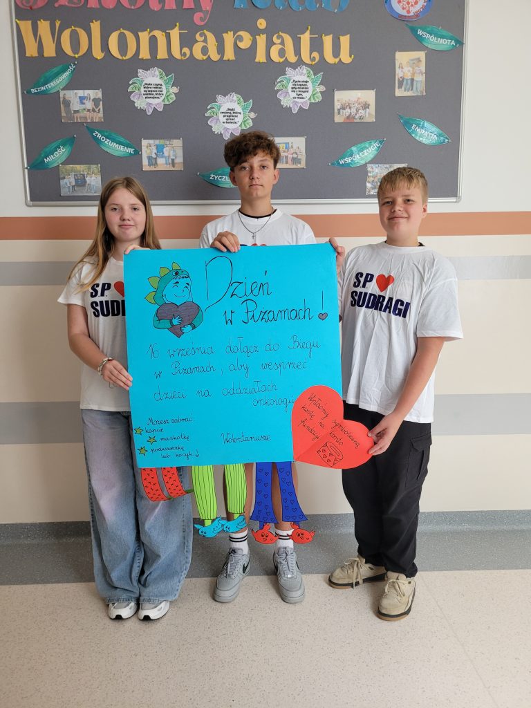 16 września Szkolny Klub Wolontariatu „Serce na Dłoni” zaprasza na „Dzień w Piżamach”. Jest to akcja charytatywna, mająca na celu wsparcie dzieci cierpiących na choroby onkologiczne. Celem „Dnia w Piżamach” jest okazanie solidarności i wsparcia dzieciom chorym na nowotwory, które długi czas spędzają w szpitalach, a piżama jest dla nich codziennym ubraniem. Dzień ten również ma na celu zwrócenie uwagi na zdrowie i profilaktykę. Piżama jest standardowym ubraniem chorych dzieci, co czyni ją symbolem ich codziennej walki z chorobą. Akcja obejmuje zbiórkę pieniędzy, które zostaną przekazane Fundacji „Gdy Liczy Się Czas”.