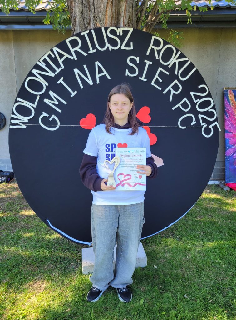 Wójt Gminy Sierpc i Stowarzyszenie „Działanie Wsparcie Rozwój ” zaprosili na podsumowanie konkursu „Wolontariusz Roku 2025 – Gmina Sierpc”. Nasze Koło Wolontariatu „Serce na Dłoni ” otrzymało dyplom uznania i statuetkę za bezinteresowną pomoc i promowanie idei wolontariatu. Dyplom oraz statuetkę otrzymała także Pani Edyta Janiszewska, za szczególne zaangażowanie i wspieranie działalności szkoły oraz społeczności lokalnej. Gratulujemy i życzymy dalszej owocnej pracy! 🌸😊