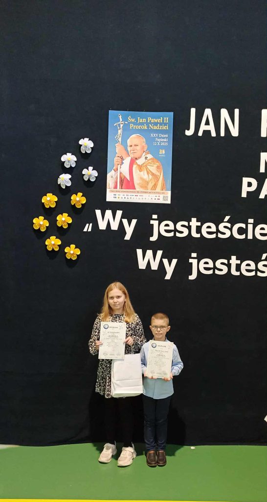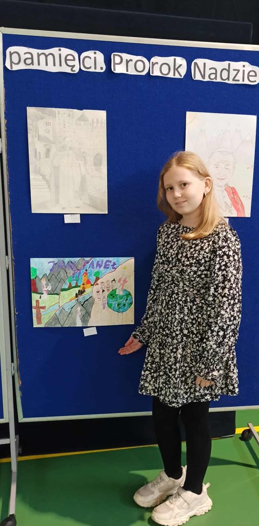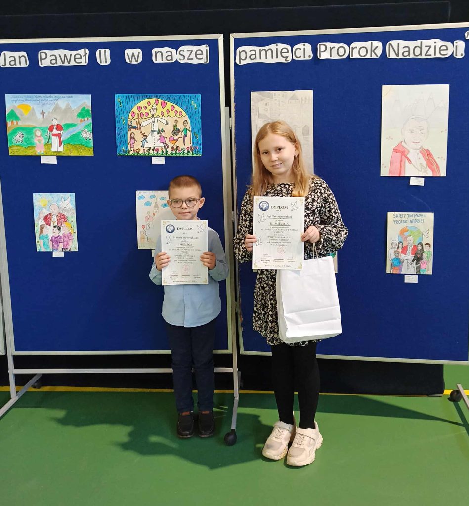 Konkurs plastyczny „Święty Jan Paweł II. Prorok nadziei” organizowany przez Szkołę Podstawową im. Jana Pawła II w Borkowie Kościelnym  pod Honorowym Patronatem Wójta Gminy Sierpc. Gratulacje dla Marcela Nawrockiego za zajęcie I miejsca w kategorii klas I – III oraz dla Igi Nastachowskiej za III miejsce w kategorii klas IV – VIII.