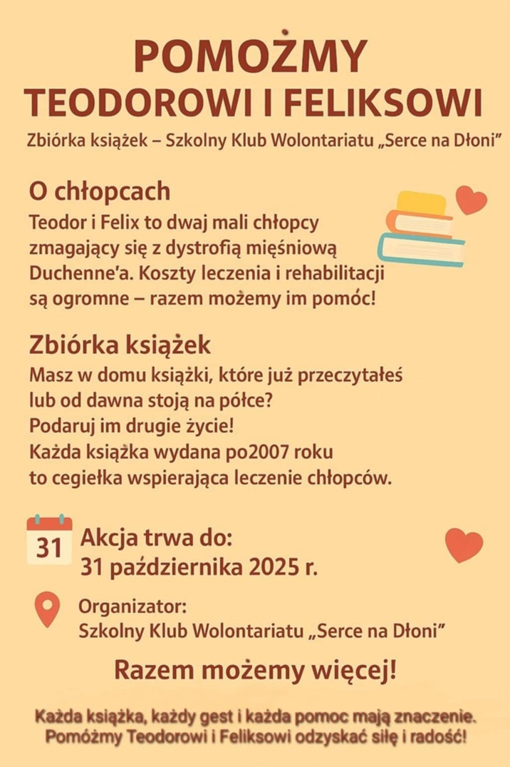 Opublikowane w 25 października 202525 października 2025Zbiórka Książek !!! 📚 Pomóżmy Teodorowi i Feliksowi❤️🩵💚